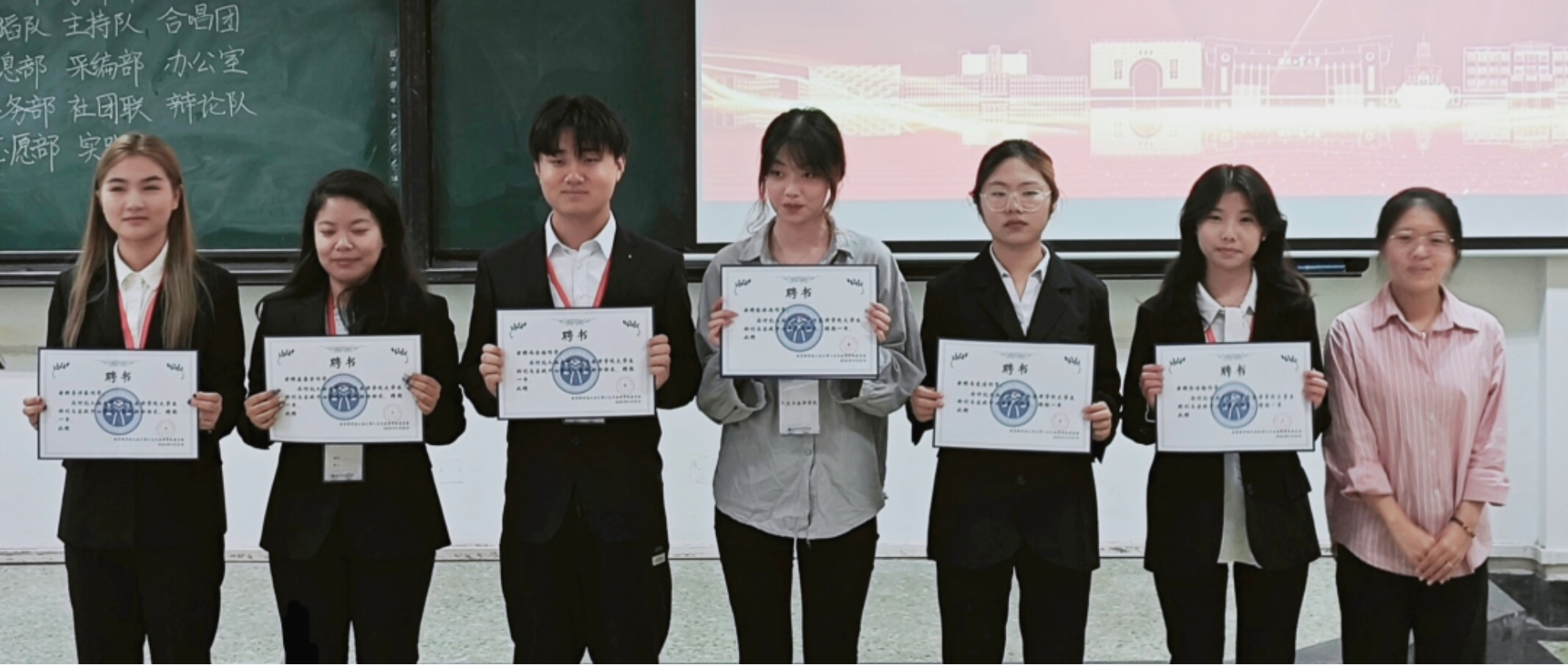 首先,由熟女 党委副书记兼副院长常萌为各位主席颁发聘书。第二十二届学生组织主席团成员有: 王一凡、马鑫洋、于鸿玮、杨丹、江萨出拉、路嘉欣、刘华烨。