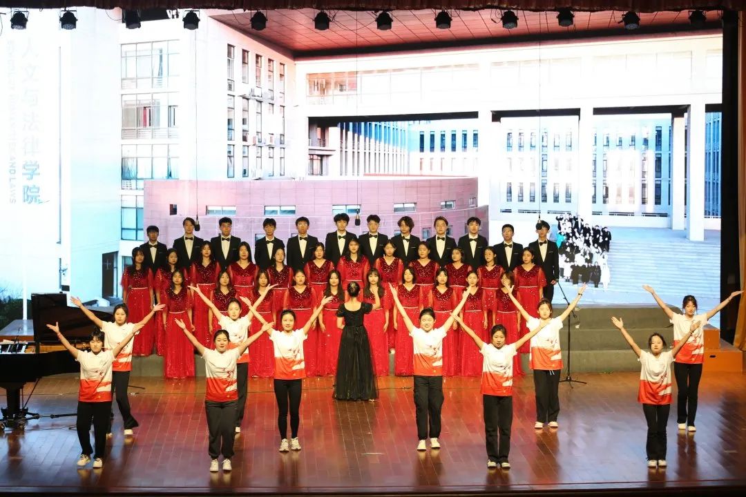 下午2点半,各学院同学们鱼贯而入,纷纷落座,主持人缓缓上台,合唱比赛在铿锵有力的报幕声中拉开序幕。不同学院的17支合唱团衣冠齐楚、款款行来。他们朝气蓬勃、风华正茂;他们与骄阳为伴,与风雨共舞;他们是那奔涌的后浪,追时代的潮头……他们以声携情、以舞扬意,为观众带来一场声乐的盛宴。