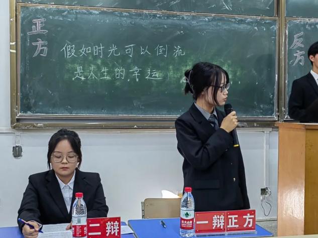 对辩阶段,正方辩手提出,时光倒流也要自己把握机会,一时幸运也可能会造就一生幸运。有些遗憾无法释怀,没必要压抑自己。“悟已往之不谏,知来者之可追。”人生本就无所有,何惧重头再来。而反方提出,即使时光倒流,幸运也只是暂时的。没有遗憾的人生,是不完整的,人要学会在遗憾中汲取力量,而不是寄希望于不可知的未来。