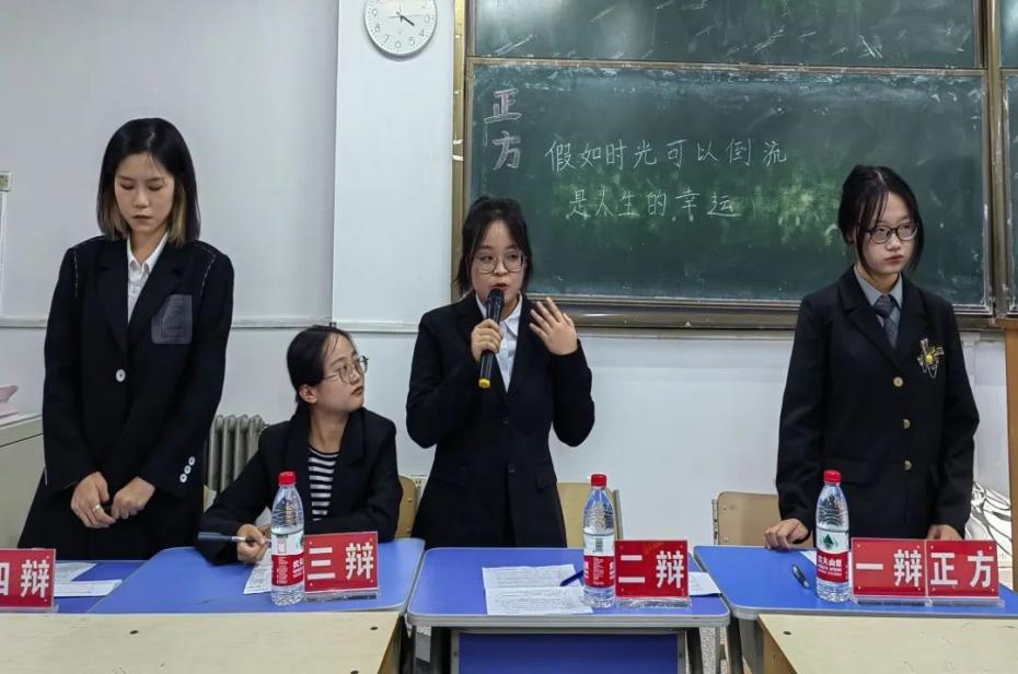 “像每一滴酒回不了最初的葡萄,我回不了年少。”大概每个人都幻想过时光倒流,去改变决定人生走向的某个选择,去收回那句令人伤心的话,去见某个重要人的最后一面。但如果时光可以倒流,真的是人生的幸运吗?正反方对此展开了激烈的辩论。正方辩手持“假如时光可以倒流,是人生的幸运”的观点;而反方辩手则持“假如时光可以倒流,不是人生的幸运”的观点。