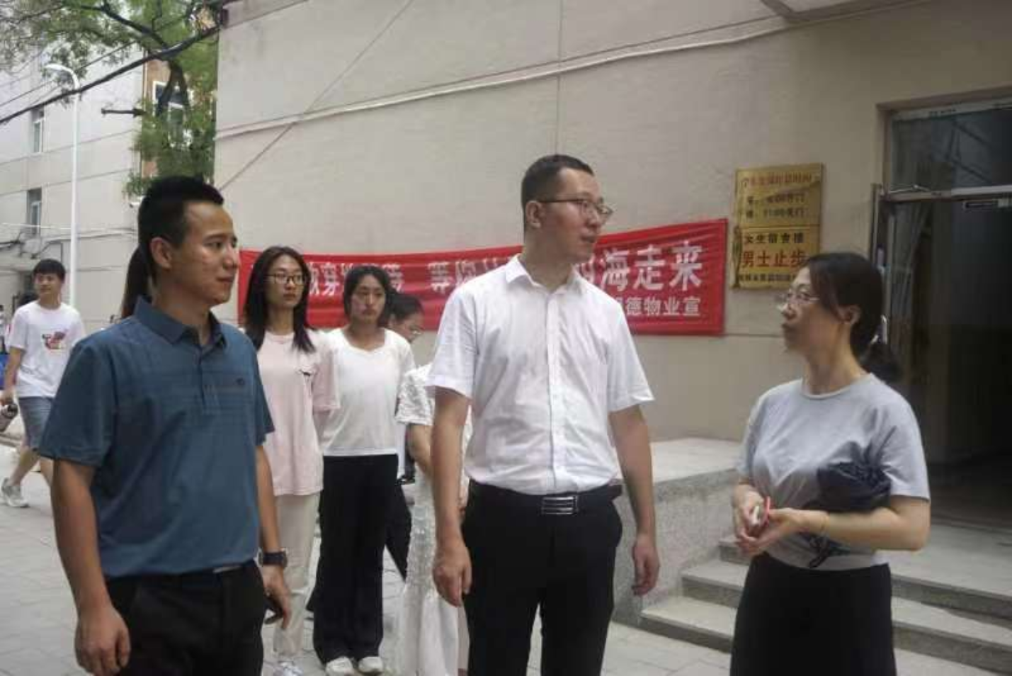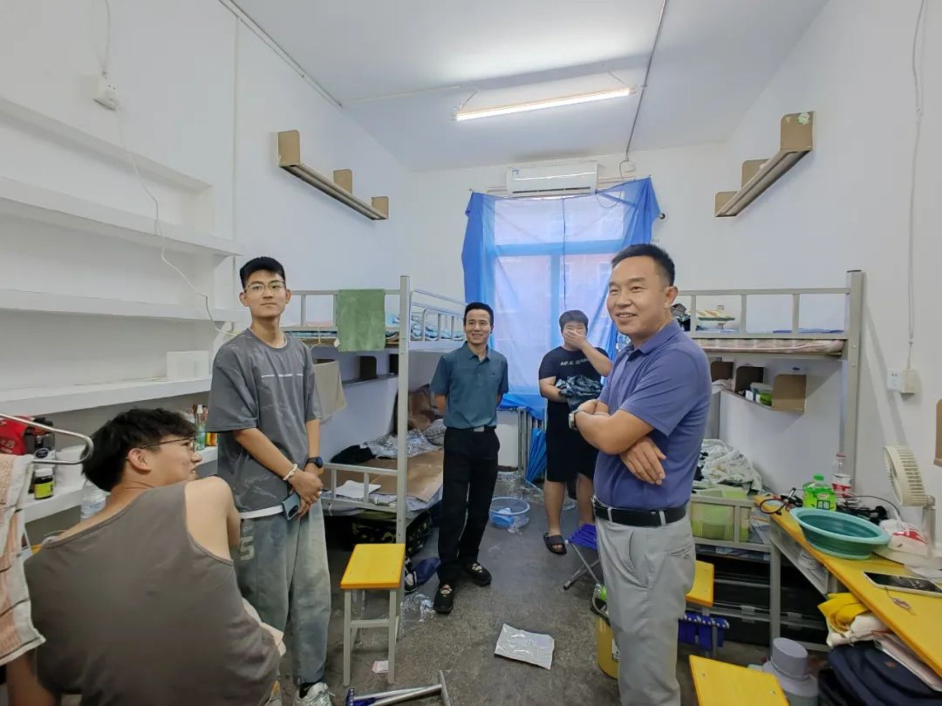 我院领导班子探访了新生宿舍,关注了学院新生的入学状况;除此之外,各位领导还和工作人员进行了亲切交谈,向他们询问了迎新工作的开展情况,展示了学院领导对本次迎新工作的高度重视,让学生们感受到了文法学院的贴心与温暖。