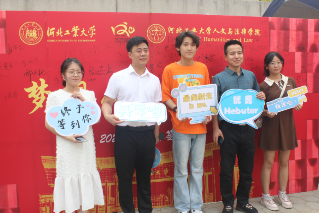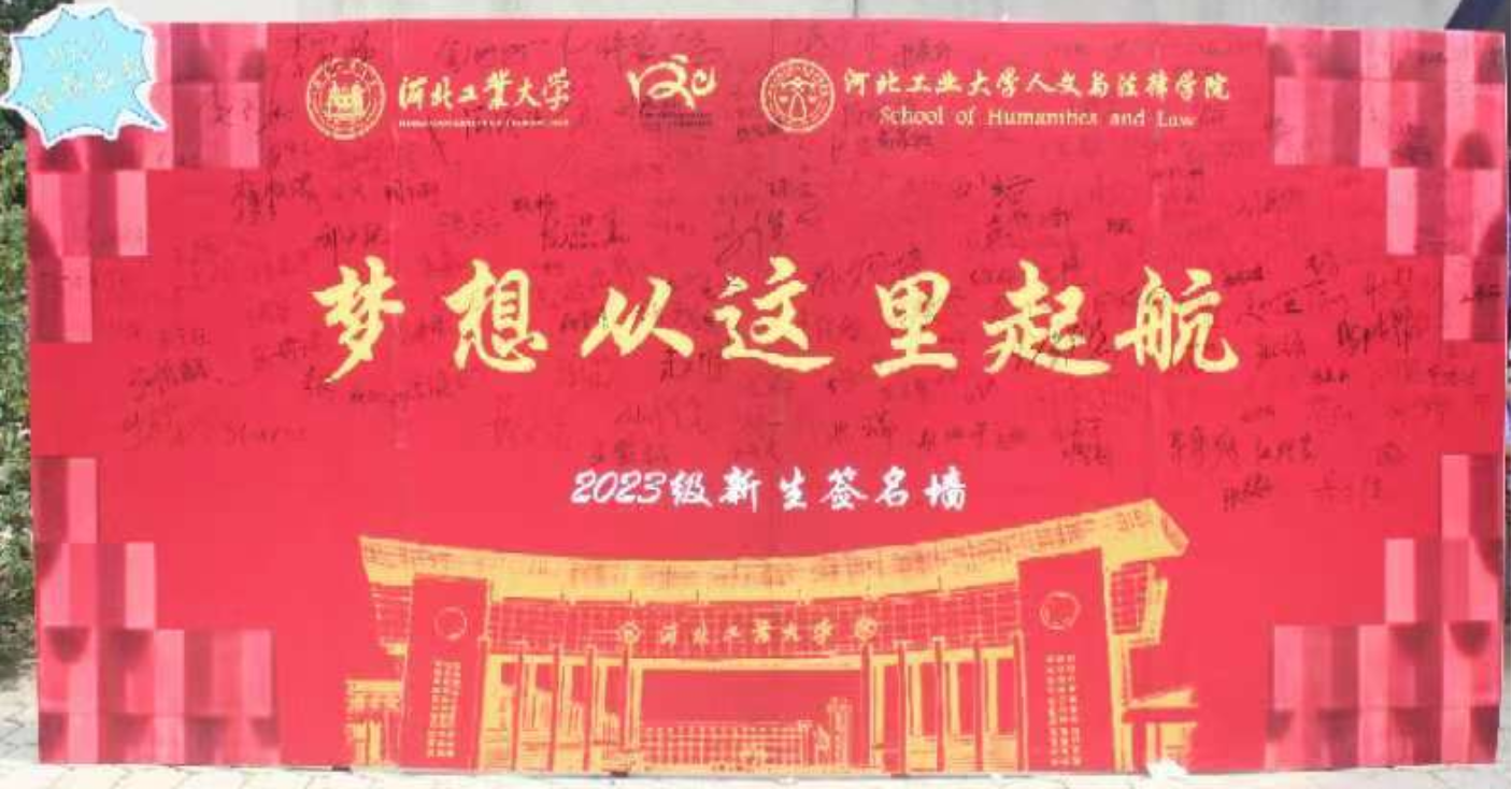 在迎新点,不仅有签名板和风格迥异的KT板,这都是学院为大家准备的浪漫,给足你升学的仪式感,大家都签名、合影了吗?