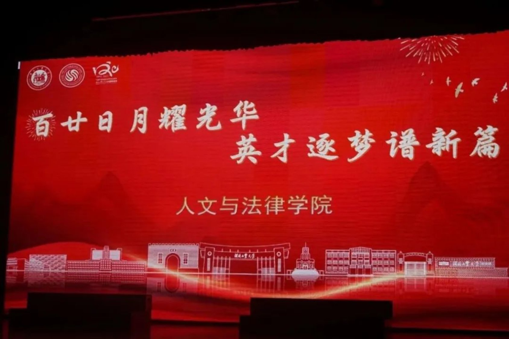 在激昂的音乐与主持人的激情演讲中,比赛正式开始,各学院百花齐放,用昂扬的姿态将对先辈的崇敬表达的淋漓尽致。火热的氛围将现场的气氛推向了高潮,不知不觉间,熟女 的节目“百廿日月耀光华,英才逐梦谱新篇”悄然上映。