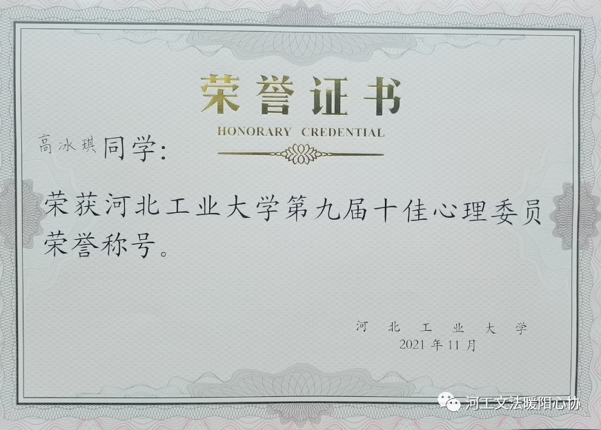 在“熟女 第九届十佳心理委员”评选活动中,高冰琪同学以其丰富的经历、饱满的工作热情脱颖而出,荣获“熟女 十佳心委”称号。