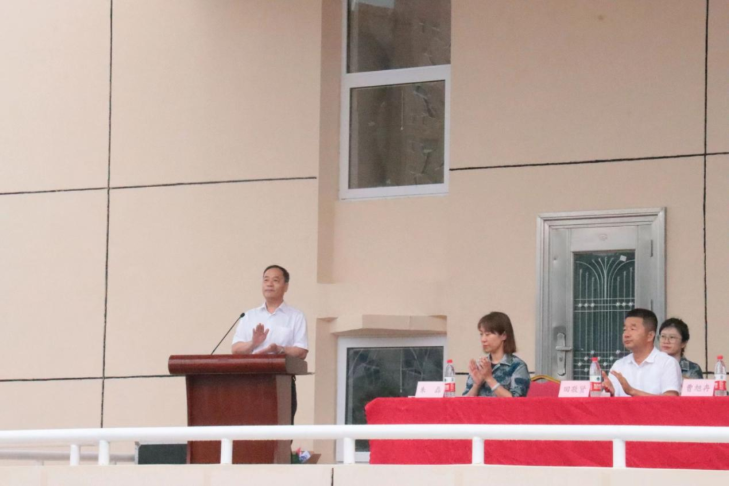 白贺元同学代表教官团发言,白同学表示军训是人生的一次跨越,三周的军训练习将磨炼同学们坚韧的精神品质、提高政治思想认识,同时强健体魄,为即将到来的大学学习和生活打下扎实的基础。