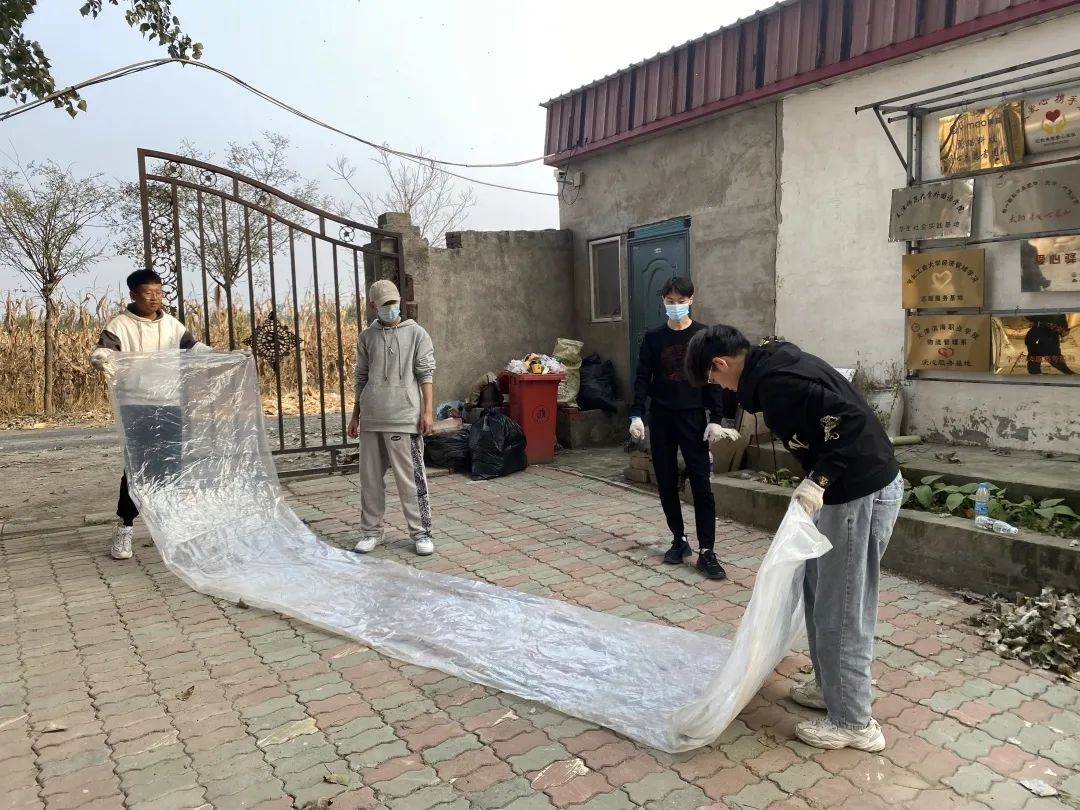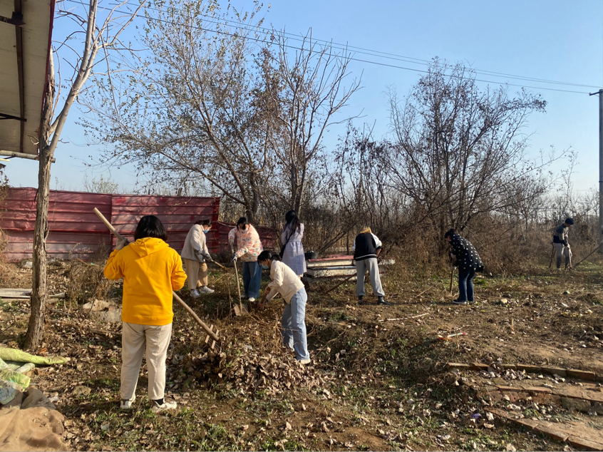“秋风起兮白云飞,草木黄落兮雁南归。”秋天带走了最后一丝绿意,黄叶悄然落下。同学们带着似火的热情,伴随着飞舞的落叶,将它们会聚成一堆堆的小山。文法学子们整理院内杂物,为孩子们提供一片整洁的活动区域。