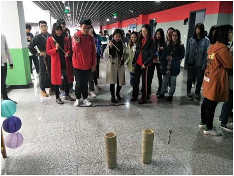 在趣味游戏环节中,同学们身着汉服,吟诗作对并重温古代游戏蹴鞠和挑战传统投壶游戏,个个使出了十八般武艺。在欢乐有趣的氛围中,大家领略到传统文化的独特魅力。