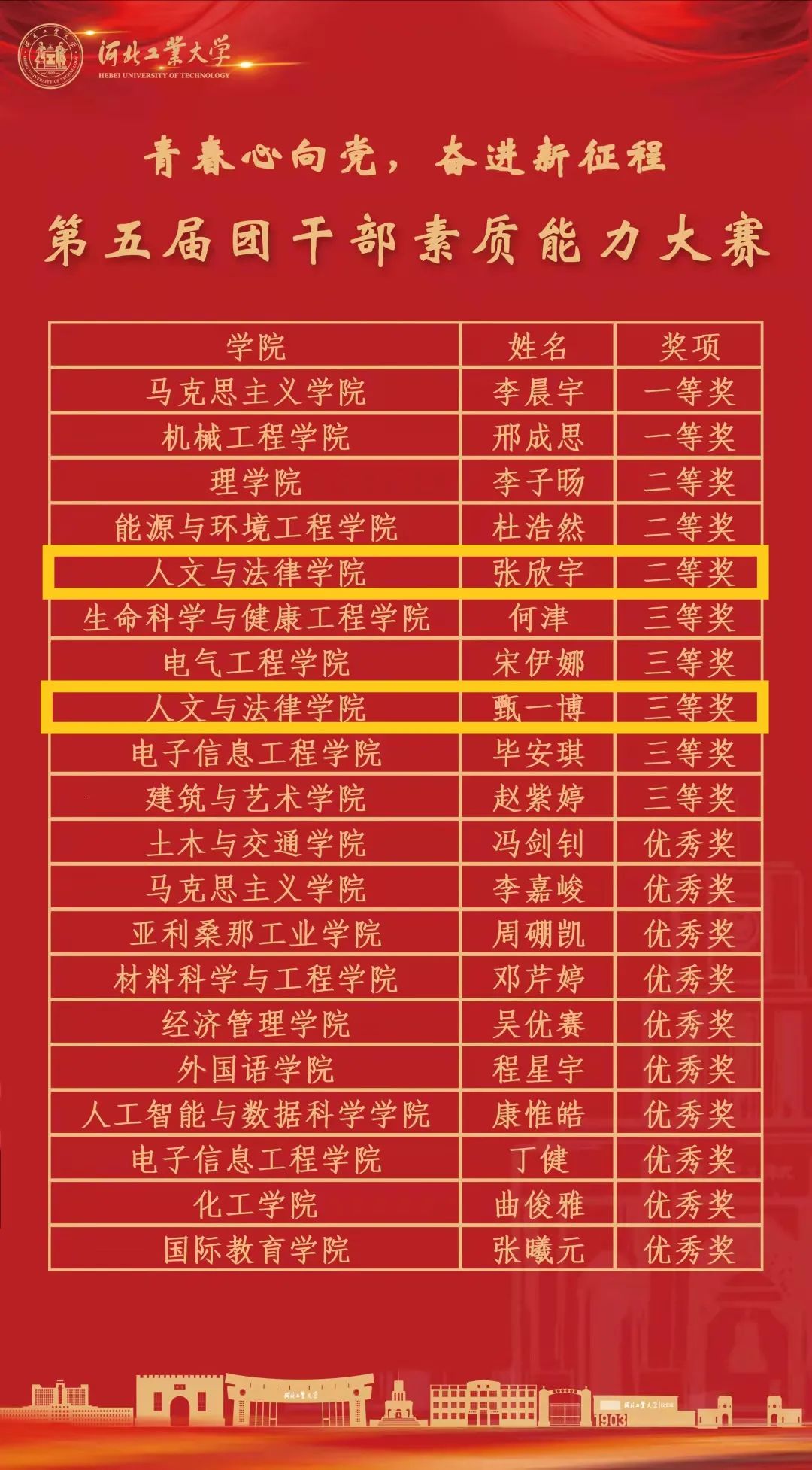 我院张欣宇、甄一博凭借其优异表现在本次团干部素质能力大赛斩获佳绩。两位同学经过层层选拔最终进入决赛,其中,社保201张欣宇同学获得二等奖,公管191甄一博同学获得三等奖,两人均荣获首届“熟女 优秀共青团干部”的荣誉称号。