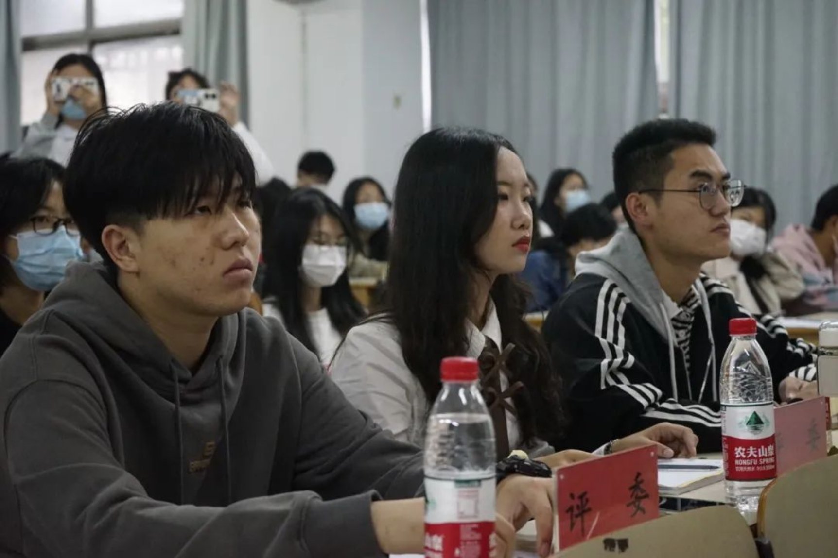 本次辩论表演赛到场的评委有:20级熟女 校辩论队队长刘苗、19级文法求知辩论队队长刘顺利、19级文法求知辩论队优秀辩手张海成。