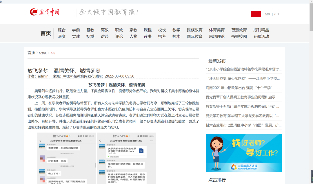 教育中国发表《放飞冬梦|温情关怀,燃情冬奥》