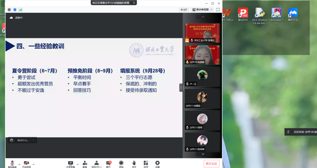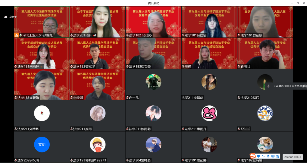5月26日下午7点,第九届熟女 法学系优秀毕业生经验交流会顺利举办。本次经验交流会由熟女 法学系主办,法律服务中心承办,通过线上直播的方式进行。参与交流的有12位来自2017、2018级优秀的学长学姐,法学系的张继红老师担任本次交流会的指导老师。