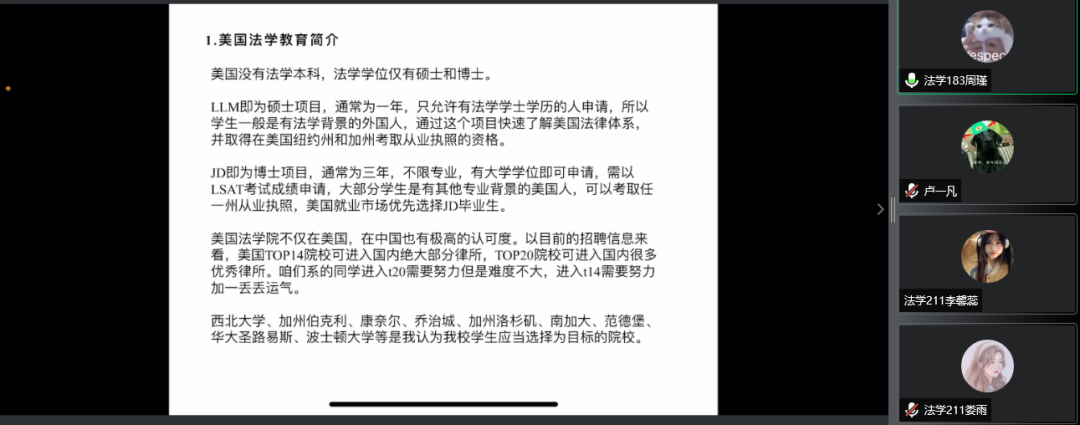 为了更好地帮助到学弟学妹们,参与交流的学长学姐们在百忙之中抽出空闲,为大家准备了一场丰富而又精彩的有关考研、保研、法考、出国和公考的经验分享会。