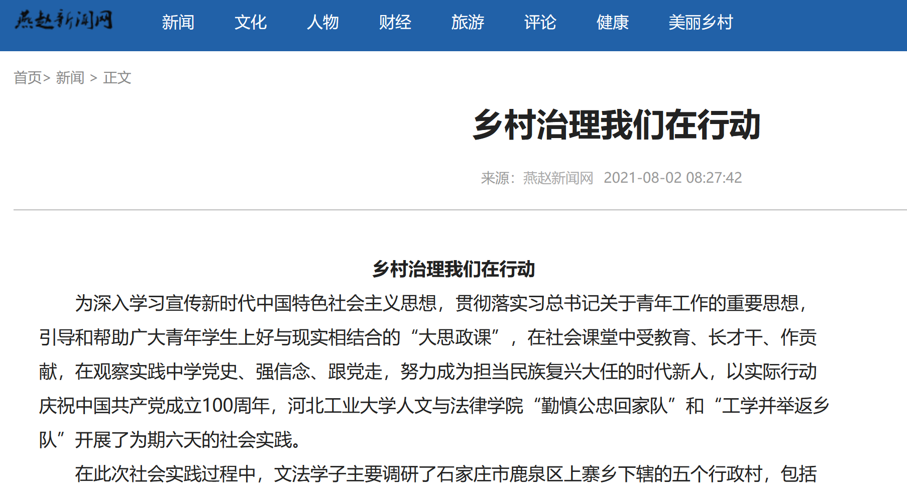 燕赵新闻网发表《乡村治理我们在行动》