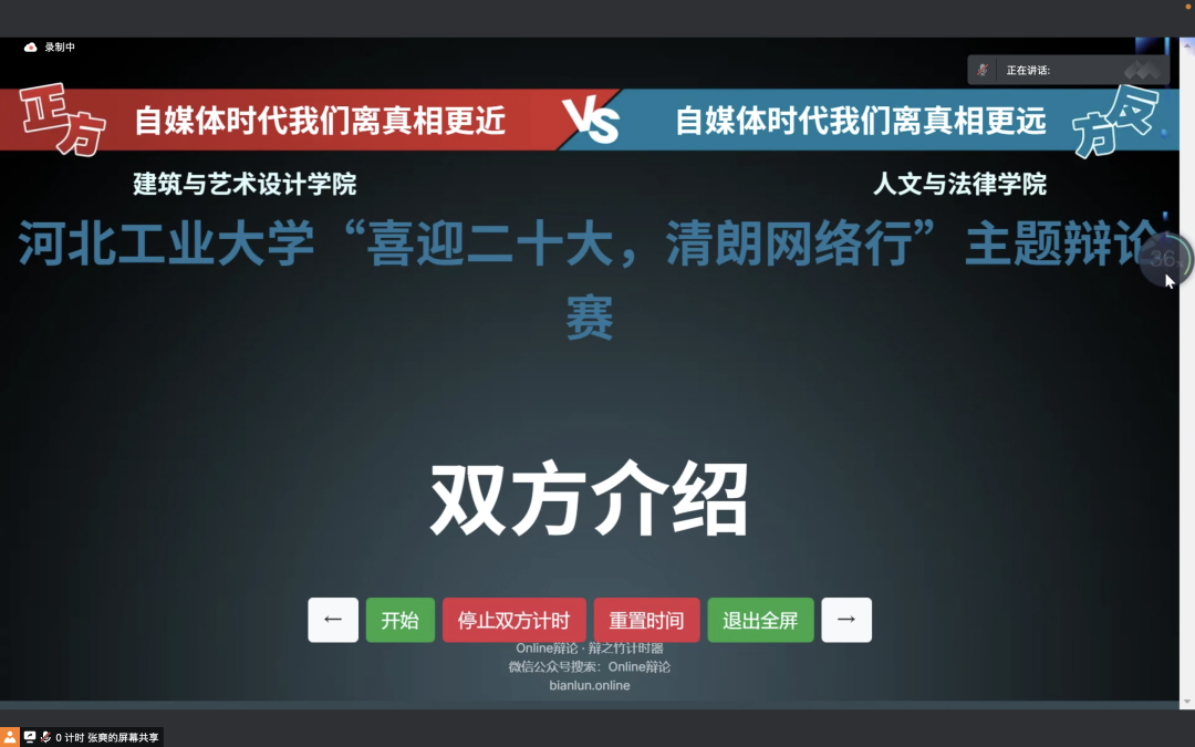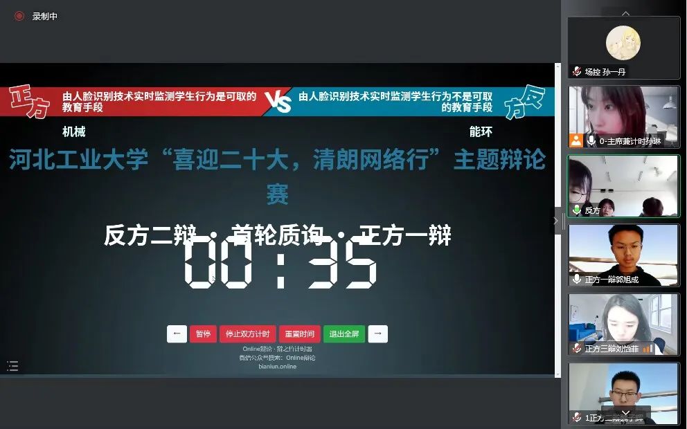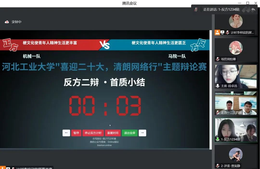10月16日上午8点30分,熟女 “喜迎二十大,清朗网络行”主题辩论赛第二轮在线上——腾讯会议成功举办。比赛共有3轮,辩手们唇枪舌战,雄辩滔滔。