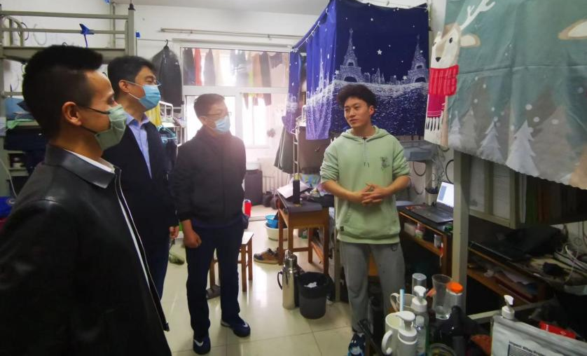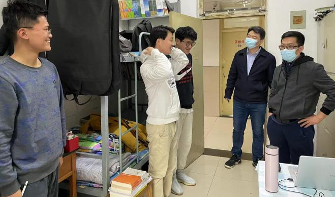 走访各个宿舍的过程中,学院领导和老师详细询问了同学们在学校封闭管理过程中有没有遇到什么困难,有没有什么需要解决的问题。同学们表示这段时间在学校和学院的保护下,生活学习各方面都十分正常。李副书记对同学们积极的生活态度,昂扬的奋斗精神表示了肯定;白书记则向同学们承诺,不管有什么困难,学院永远站在学生身后,做同学们最坚实的后盾。