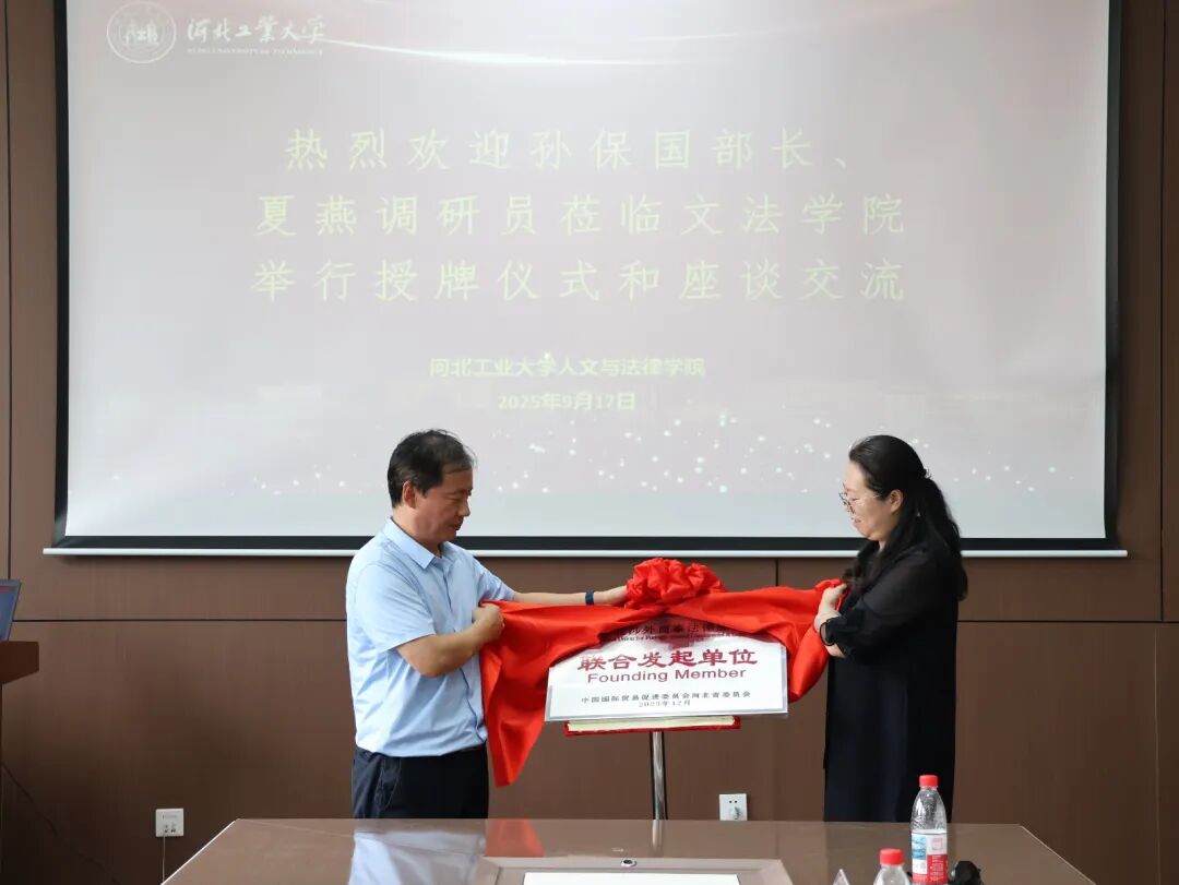 随后,孙保国部长代表河北省贸促会向文法学院授予河北涉外商事法律服务联盟联合发起单位牌匾,本次授牌仪式和座谈交流会议圆满成功。双方将通过资源共享、优势互补,共同构建河北省涉外商事法律服务体系,为河北省打造法治化、国际化营商环境注入新动能。