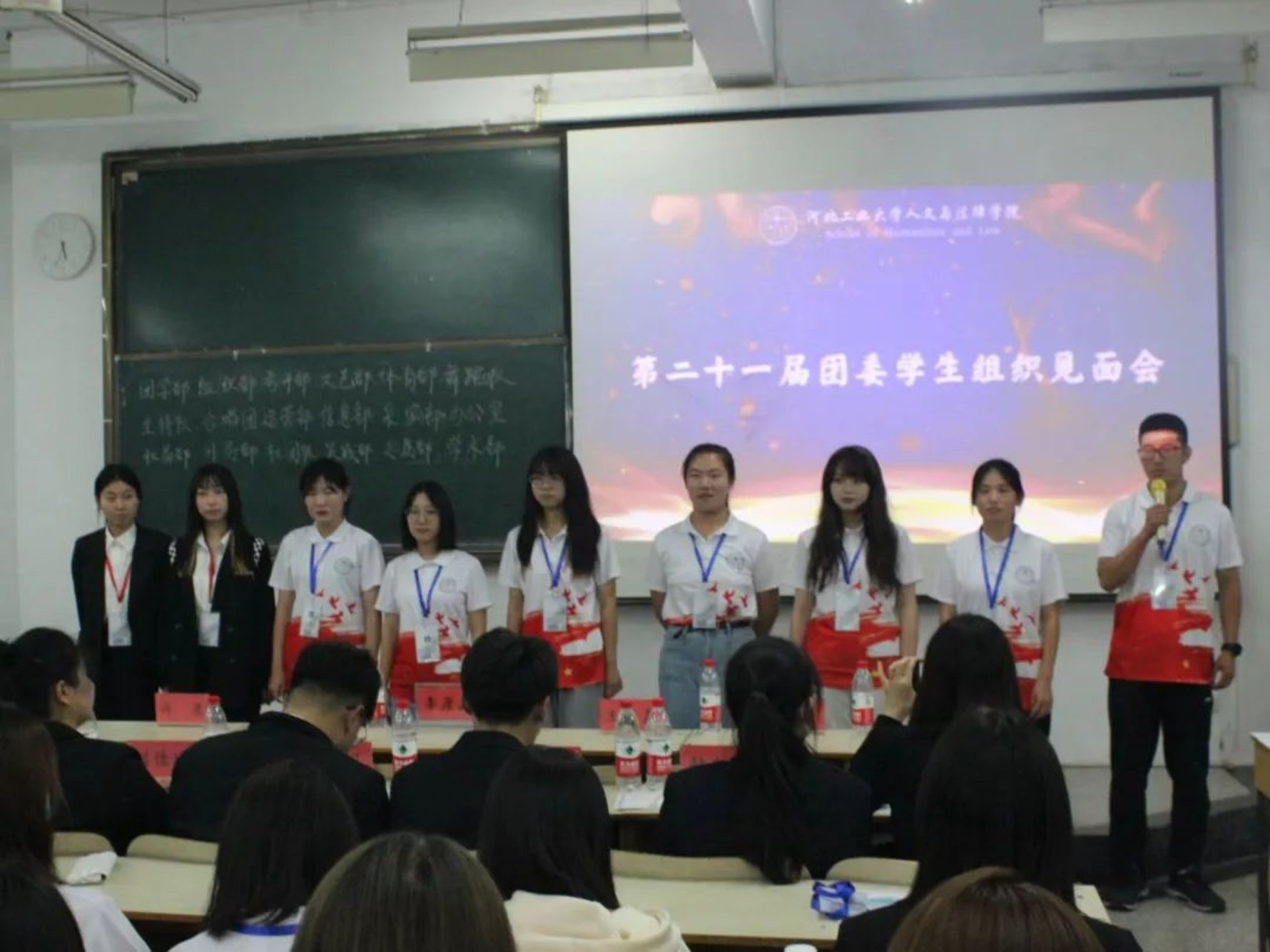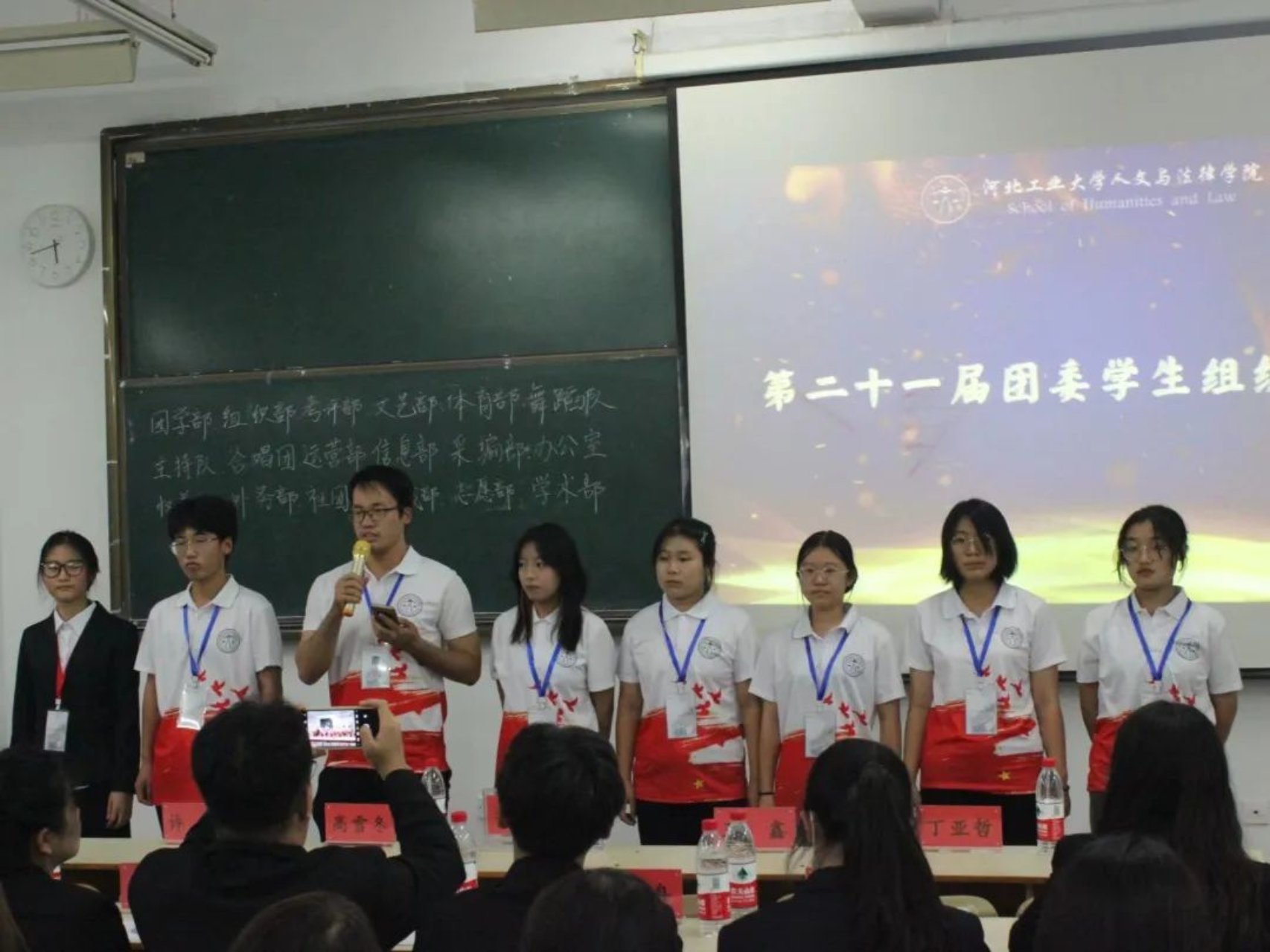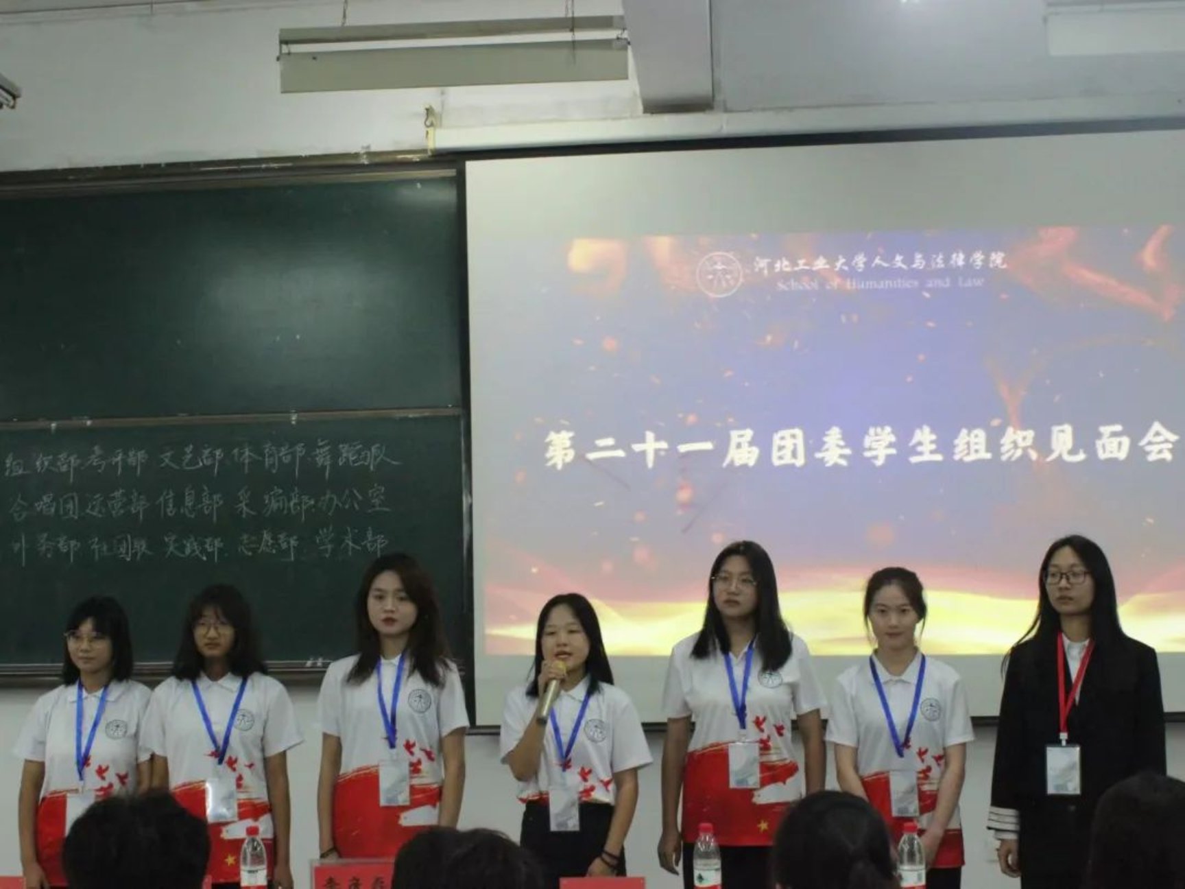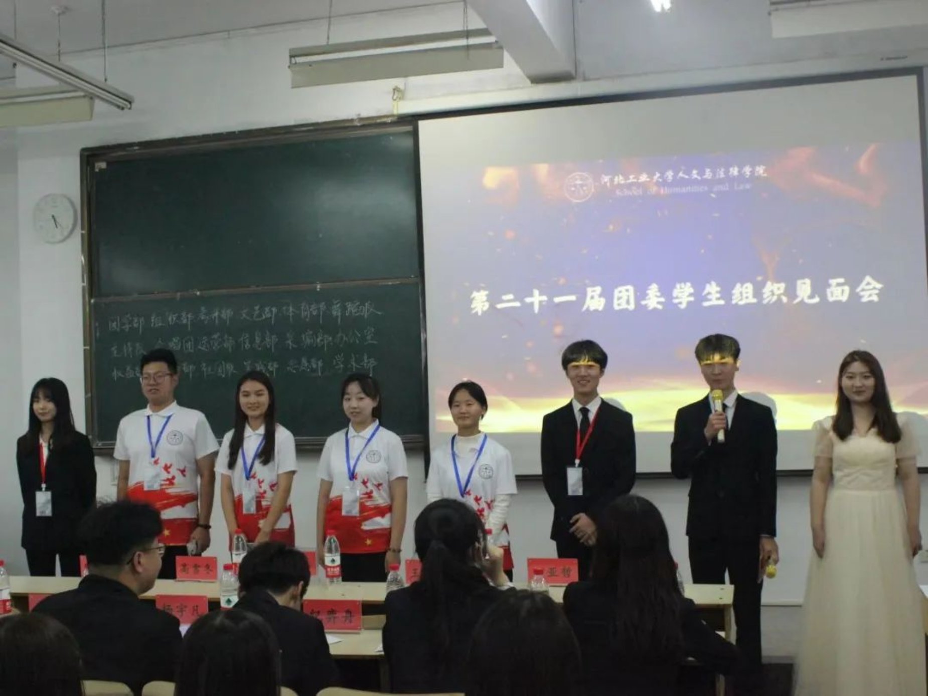 随后是团委各学生组织见面会,新一届的部员们轮流上台自我介绍,大家活泼开朗,妙语连珠,展现出积极向上的青年群团的风貌。相信新一任学生组织成员一定会团结一致,共同努力,秉承上届的优良作风,并在此基础上继续开拓创新,奋发图强!