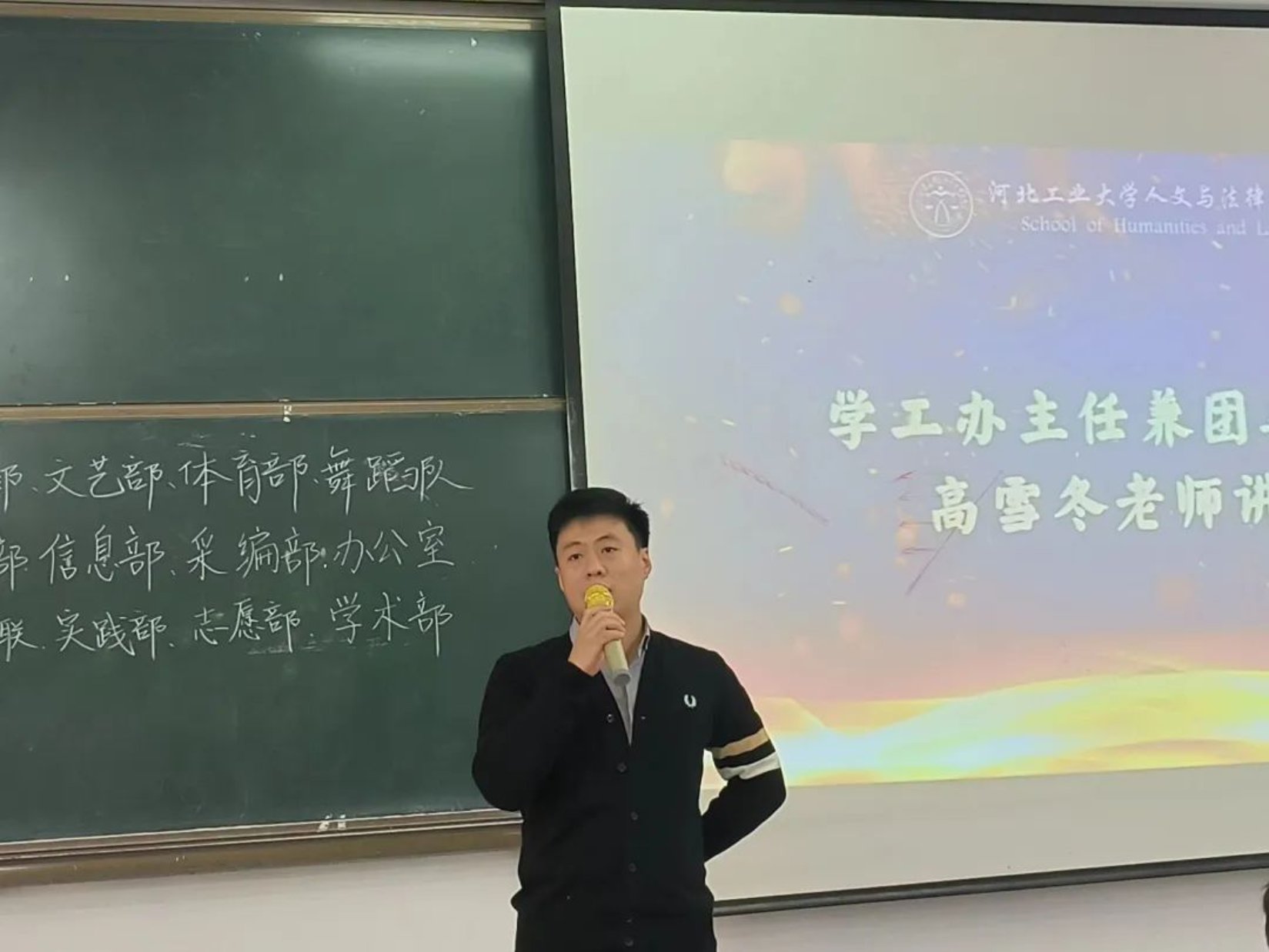 杨宇凡主席首先分享了个人感悟,他认为加入学生组织是对个人的突破以及对个人能力的肯定。希望新成员将压力转化工作动力,不辜负自己的选择。