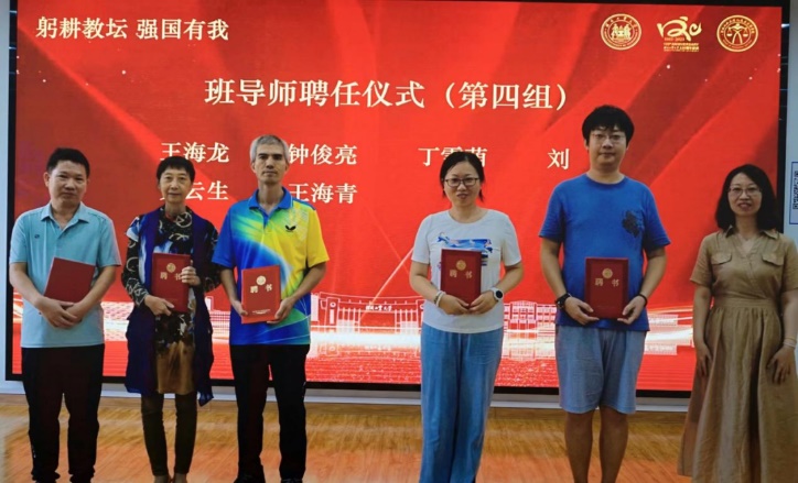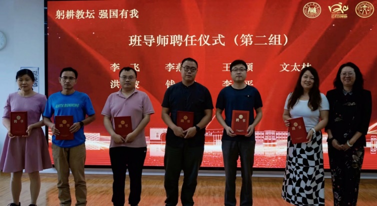 接下来进行了班导师聘任仪式。在新学期我院共聘任27位优秀教师担任本科生班导师,并向他们颁发了聘书。