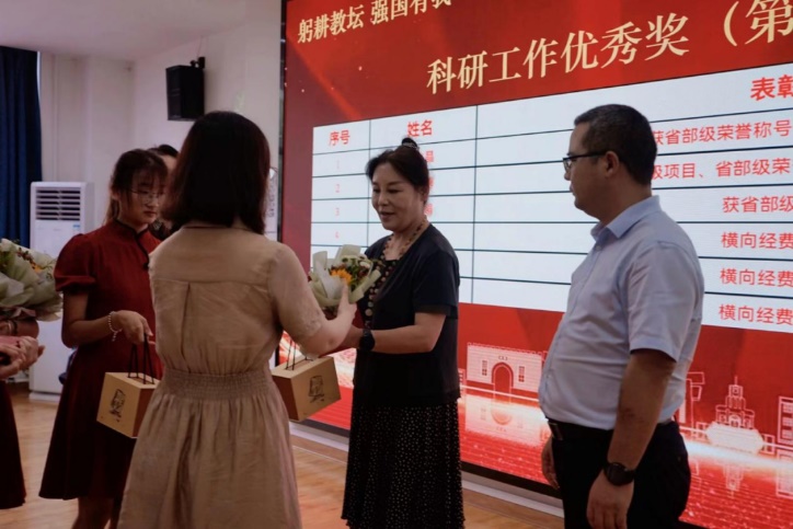 接下来,学院对一年来在教学、科研和管理等方面取得优秀成果和做出突出贡献的25名老师进行了表彰。