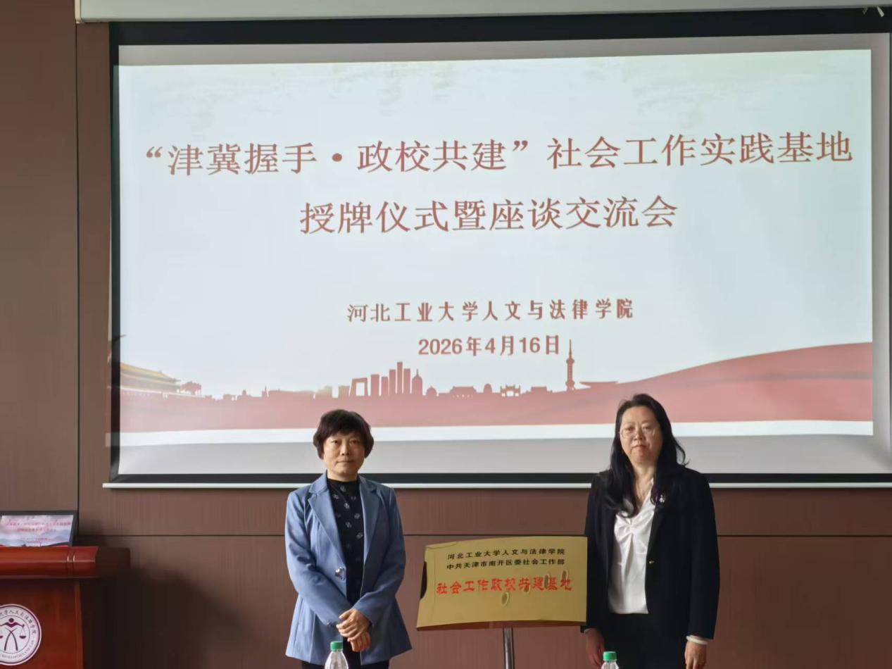 2026年4月16日14:00,一场旨在深化津冀合作、推动产学研融合的交流座谈会在我校红桥校区熟女 205会议室举行。天津市南开区委社会工作部部长、区委“两新”工委书记李怡一行,与我院党委书记于慧、院长蒋冰晶及学院相关负责人、专业教师齐聚一堂,共同为“社会工作政校实践基地”揭牌,标志着双方的深度合作迈出了坚实的一步。