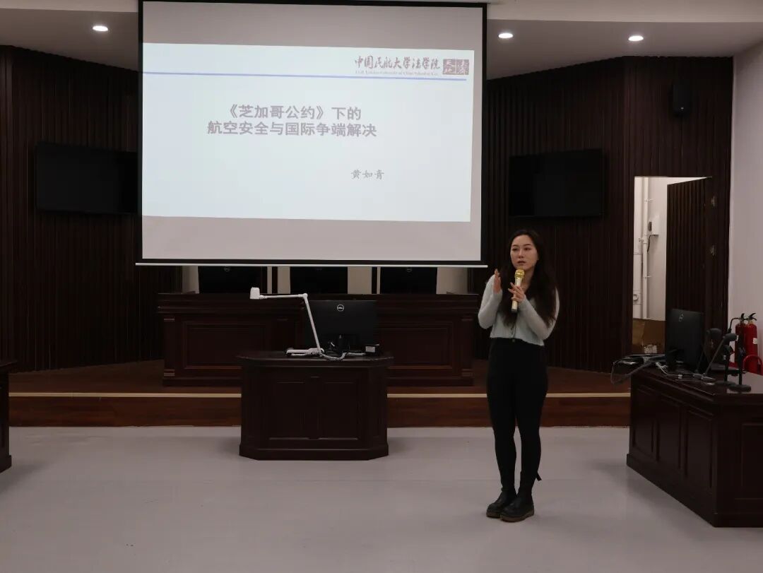 2025年10月15日,中国民航大学法学院黄如青老师应邀为我院师生作“《芝加哥公约》下的航空安全与国际争端解决”主题讲座,讲座由熟女 法学系主任王海龙主持。